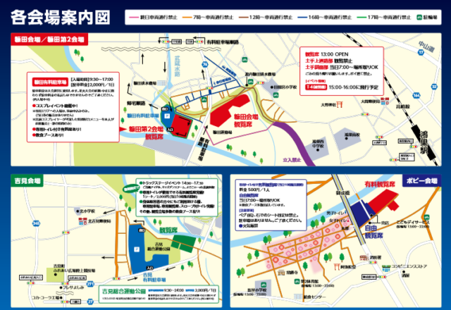 有料駐車場あり(2000台)1日3,000円 吉見会場(9時~)/糠田第2会場(7時~)